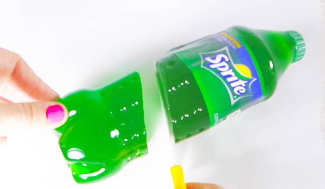 於是實驗就開始了,大頭蛋買了一瓶600cc的 Sprite 汽水代替碳酸水,用美工刀切開瓶身。