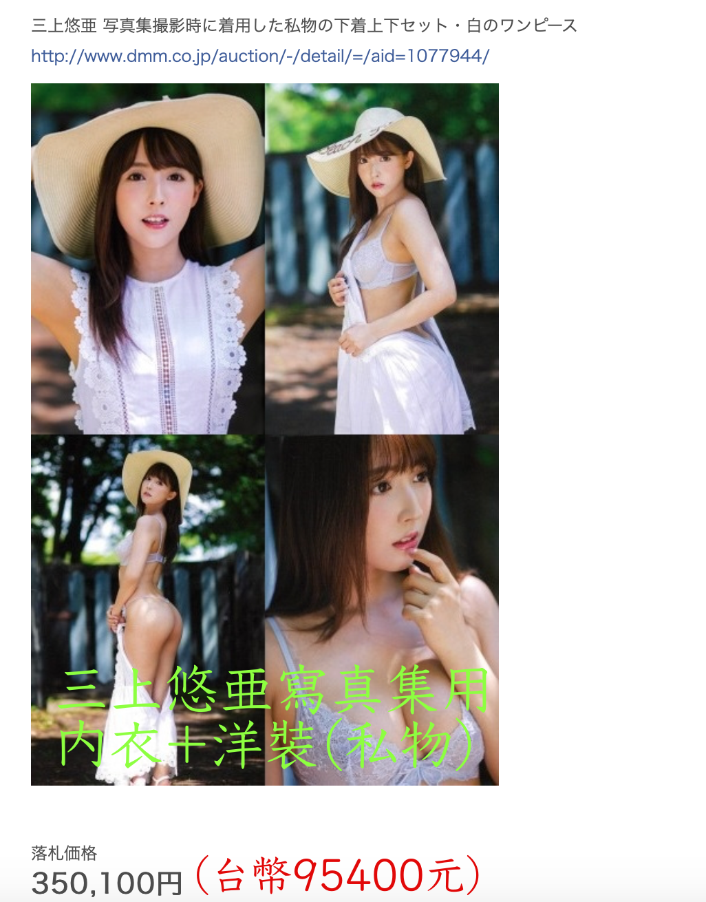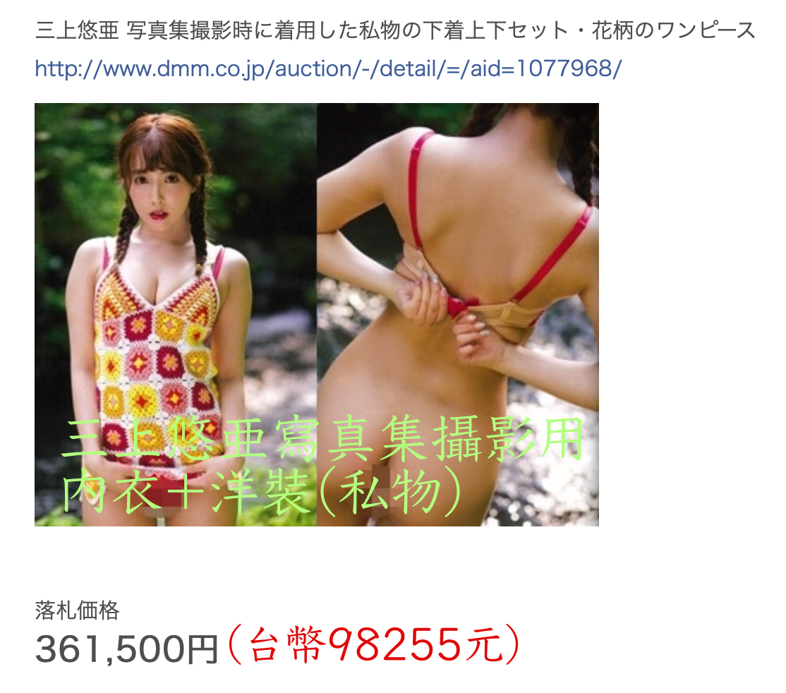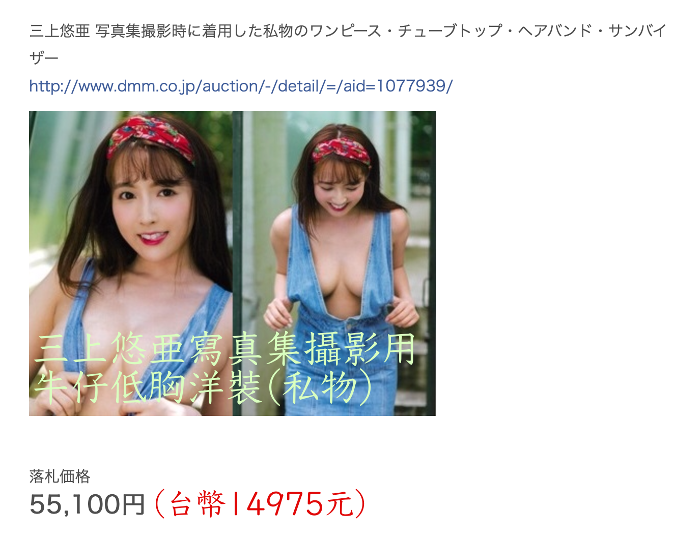 印象中我沒看過女優衣服賣這麼貴的,只能說三上悠亜就是三上悠亜,真的是會讓影迷一擲千金。這也讓我不禁期待有朝一日她能來台灣開賣場,我想看看這兒的影迷願意花多少錢買她身上的衣服~