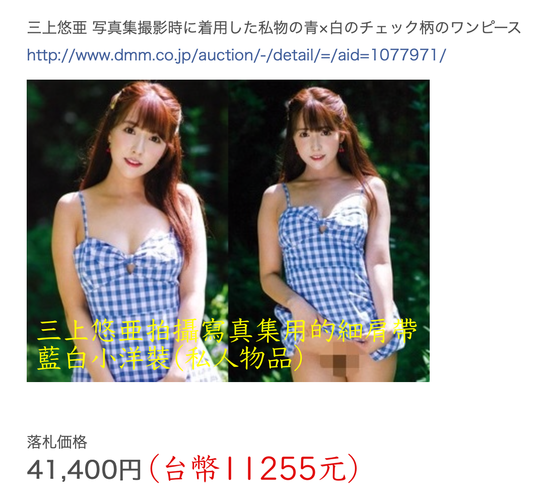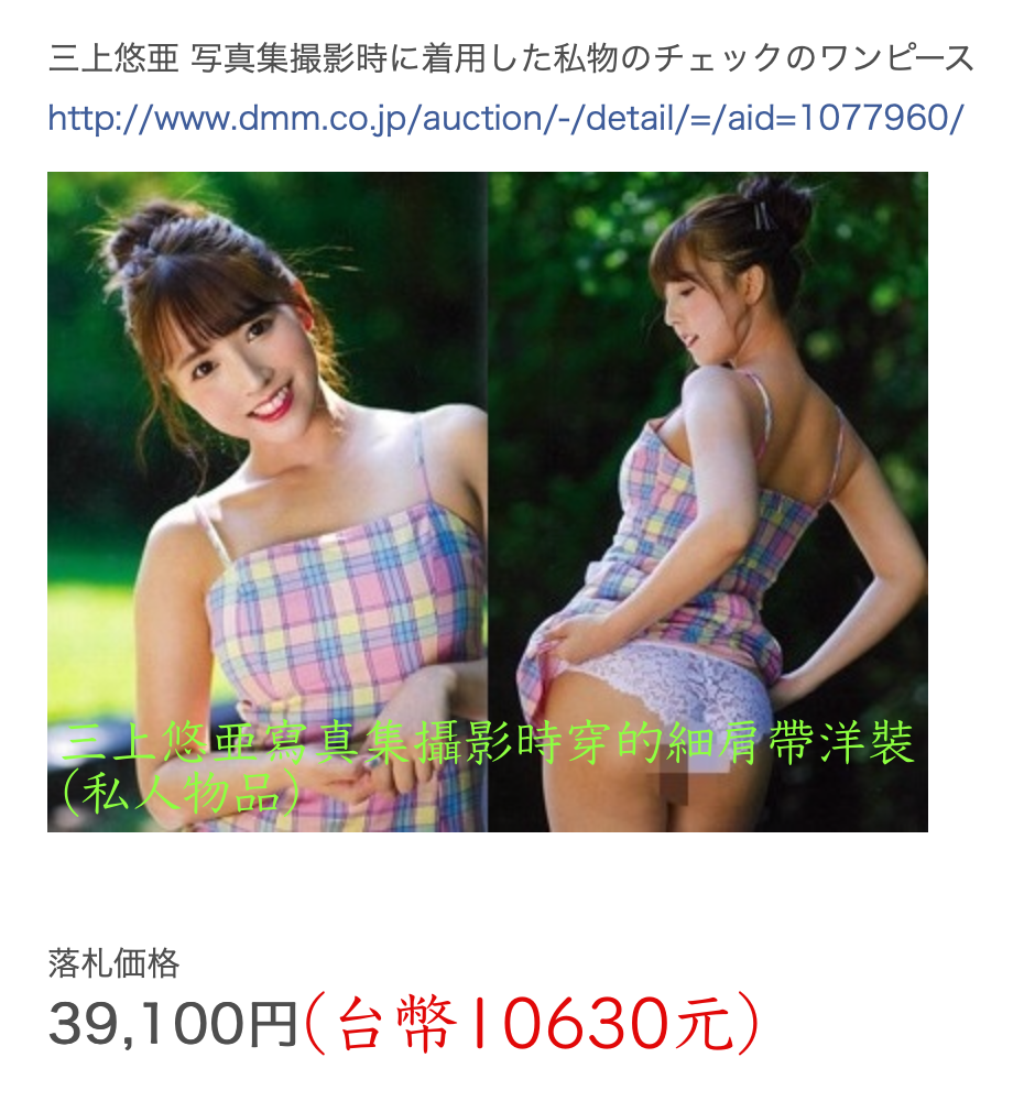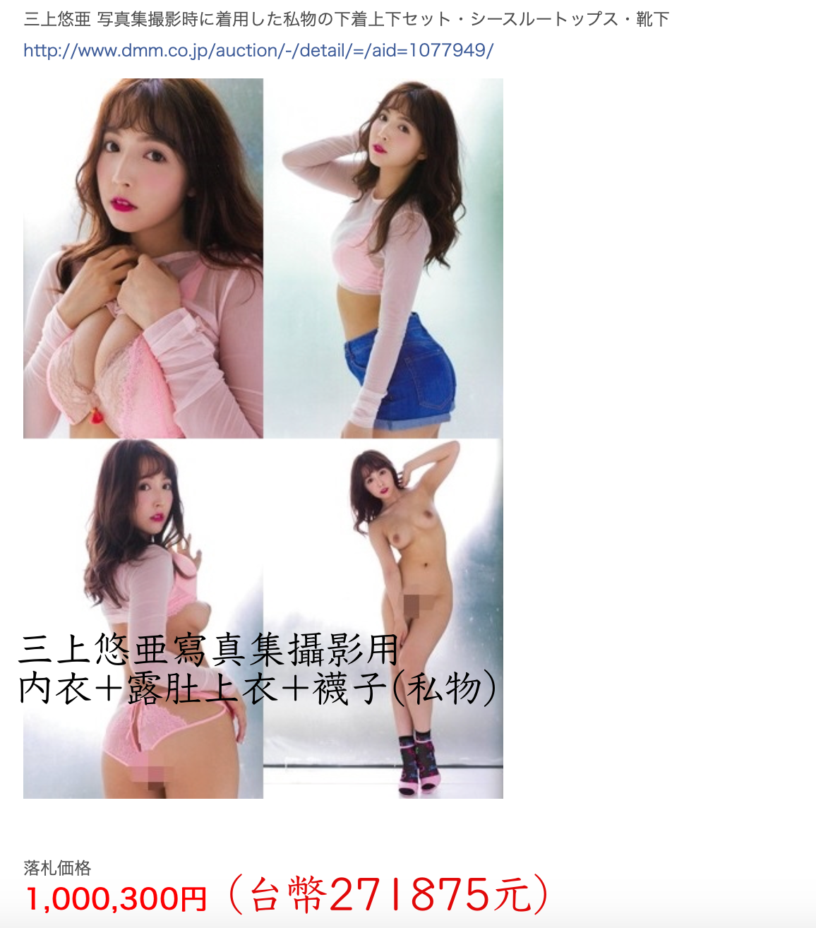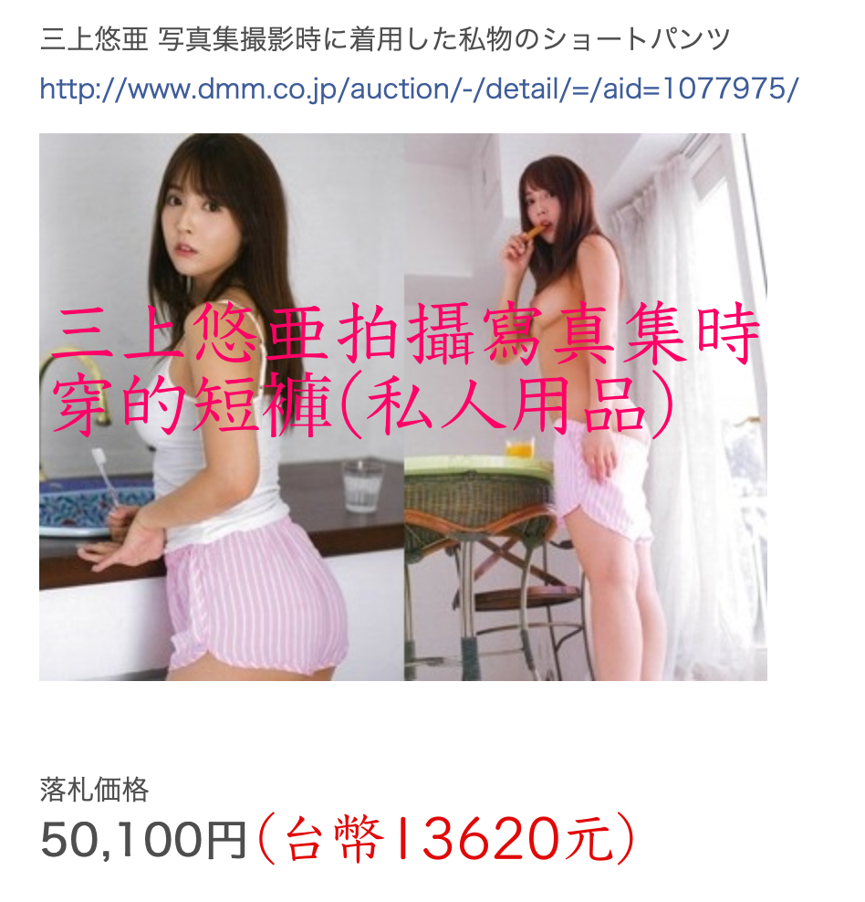 印象中我沒看過女優衣服賣這麼貴的,只能說三上悠亜就是三上悠亜,真的是會讓影迷一擲千金。這也讓我不禁期待有朝一日她能來台灣開賣場,我想看看這兒的影迷願意花多少錢買她身上的衣服~