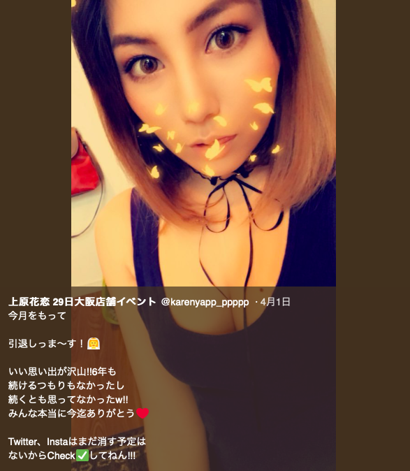 這應該是最適合上原花恋的告別方式,眾所皆知,在業界待了6年的她形象有極大轉變:一開始降臨暗黑界的她主打的是寫真麻豆的資歷及混血兒的外型,不過現在的上原花恋早就不是當初的那個她了,為了求生,她把皮膚曬黑、裝了兩顆鹼性電池讓大家知道屁股很大的她「超會搖」,搖身一變成為黑色會美眉的代表人物: