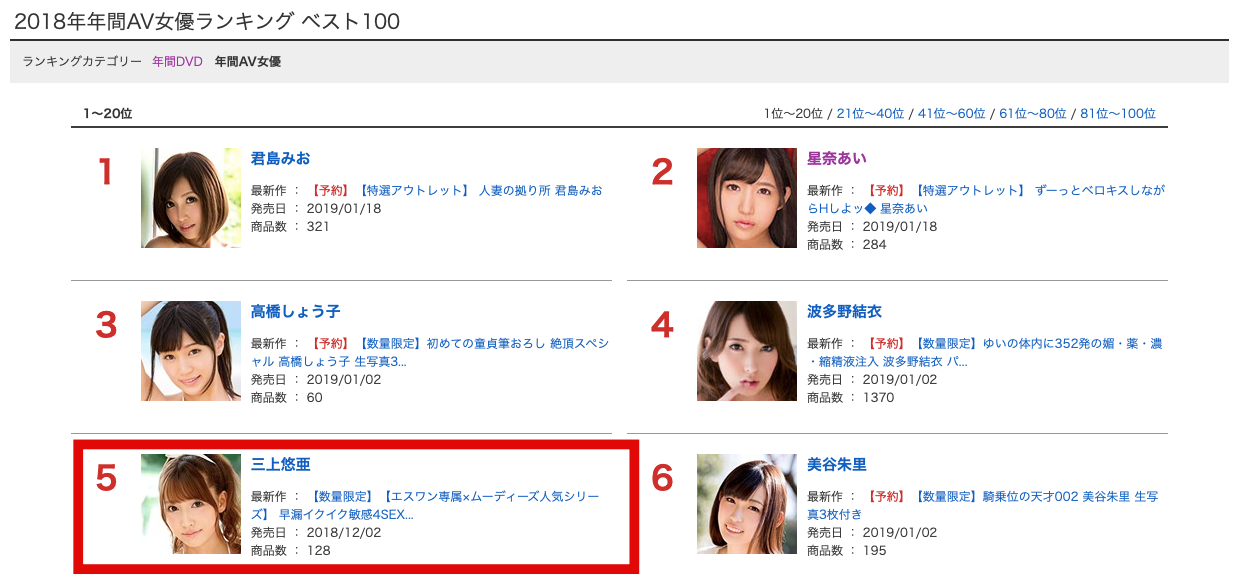 看到本庄鈴造勢成功、看到高橋しょう子(高橋聖子)和河北彩花屠殺排行榜,你是否想問,三上悠亜呢?
