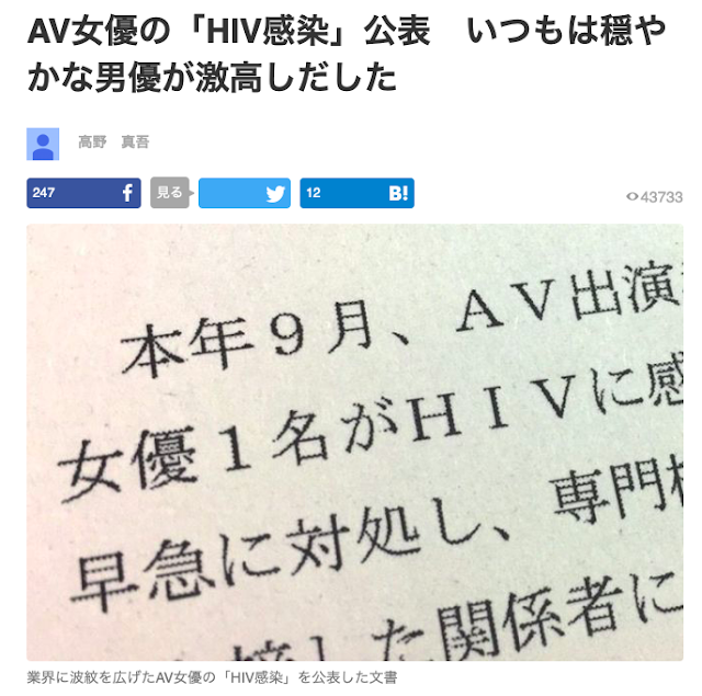 這兩件事都非常嚴重,吉沢明歩何許人也?她可是出道15年的活化石,從她接下來的行程安排你就知道有多少人要和她說再見;至於女優感染HIV更是事關重大,雖然AV界強調沒有人被這個不知道是誰的女優傳染,但不只有幾位男優因此暫時退出戰線也讓AV界採取更嚴格的篩檢措施甚至還有片商暫停拍攝中出片…