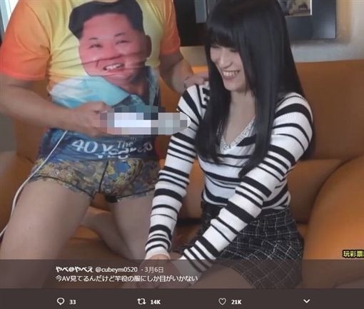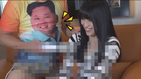 畫面中看到男主角拿著情趣用品挑逗女主角,兩人如此開心、愉悅呀~~~誰也沒想到素人作品中的男主角身上會穿著"北韓領導金正恩"的上衣,天呀!!哈哈哈哈哈,這畫面實在是太逗趣了啦,而且上衣中的金正恩笑的超級無敵陽光燦爛,讓看AV的網友焦點全部轉移到衣服身上!完全忘了自己正在觀看愛情動作片這回事兒。