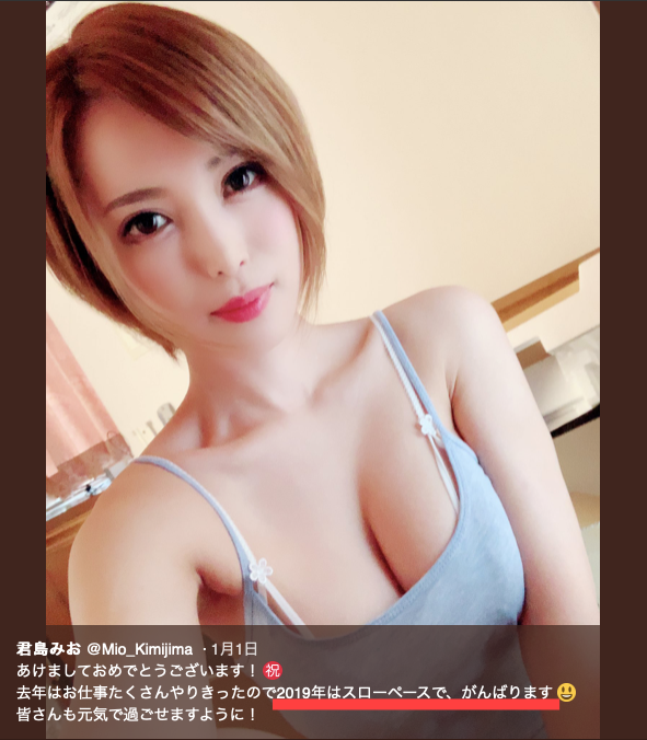 根據事務所提供的消息,君島みお(君島美緒)身體沒問題,但之前瘋狂的發片行程確實讓她感到疲累,所以這幾個月發片變少並非是片商有了新歡就忘了舊愛而是這位發片王刻意減少工作量。而到了2019呢?