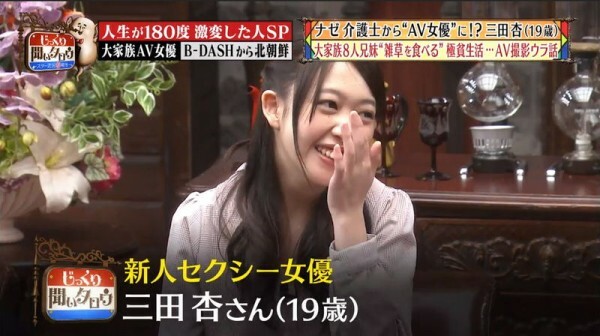 但她掙得還是不夠用,所以三田杏很小就知道要和家人去路邊摘野草當神農氏,後來書也沒唸完就輟學當看護。後來去拍AV她也很明白地說是因為要貼補家用,自己書沒唸完不要緊,但她一定要弟弟妹妹們完成學業: