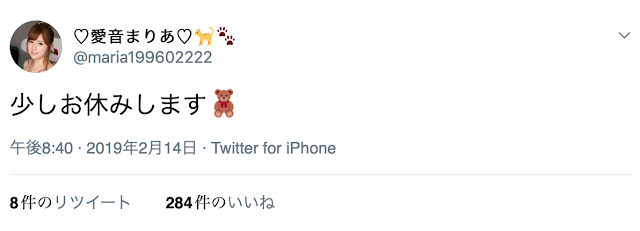因為在這之後,愛音まりあ(愛音麻里亞)就沒再更新twitter了。