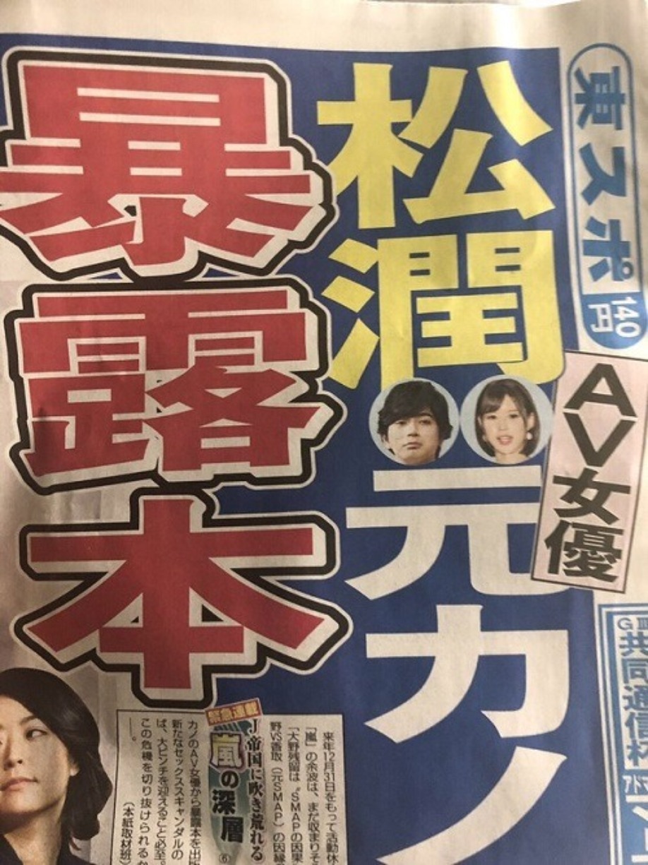 2016年時「週刊文春」踢爆日本傑尼斯「嵐」成員劈腿,美夕看到這則新聞時根本嘴都合不攏了,因為「週刊文春」登出了一張超級猛的照片,身為「嵐」之一成員的『松本潤』,背著交往超過十年的女友『井上真央』,劈腿AV女優『葵司』長達4年之久!