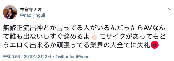 當然,我知道一定有人會指責馬賽克不該存在、女優也沒必要為此傷心吧?