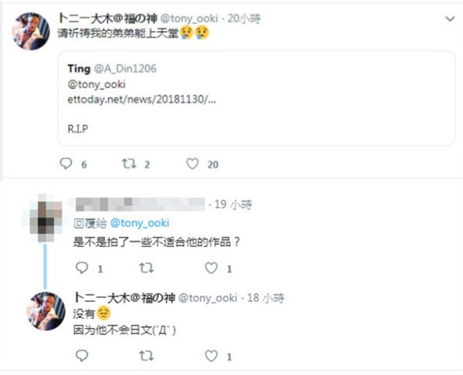 更有網友好奇詢問,是不是因為李男有接拍不適合的作品,才會導致自殺事件發生,東尼大木坦承:「沒有,是因為他不會日文的關係,所以之後才沒有再繼續合作,跟他輕生沒有關係的。」