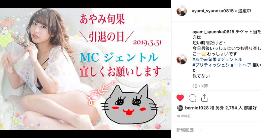 會讓經紀公司這麼寫可說是情況嚴重,但究竟發生了什麼事在下也不方便多問。果然,沒過多久就傳出這位女優退團不玩的消息,假如她真如經紀公司說的那樣,那我想她恐怕是很難延續AV生涯了…