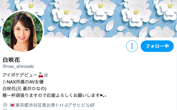 她真正的藝名是「白咲花」,之所以會用ひなの(雛乃)之名在ideapocket限定出道是因為那時候她用的名字是「蒼井ひなの(蒼井雛乃)」,至於她是不是一片限定打完就走呢?從她在twitter發文說今天(4/26)要去攝影來看絕對不是的,搞不好現在她正翹高著屁股被男優老漢推車呢~