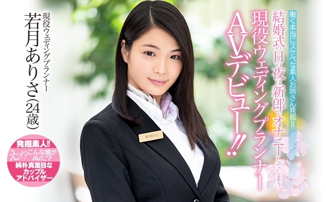 把焦點放在另一家片商本中的作品「働く本当にスケベな素人お姉さん発掘!!結婚式の日の夜は新郎でオナニーしてしまう現役ウェディングプランナーAVデビュー!! 」吧:這次她不是穿著高中生制服的小妹妹了,而是穿著套裝、戴著白手套的禮儀師…(喂),不是啦,她是個「ウェディングプランナー(Wedding Planner,婚禮企劃師)」,每天看著那些準備結婚的情侶她是羨慕嫉妒恨,整天就想搞人家準新郎讓新娘不幸: