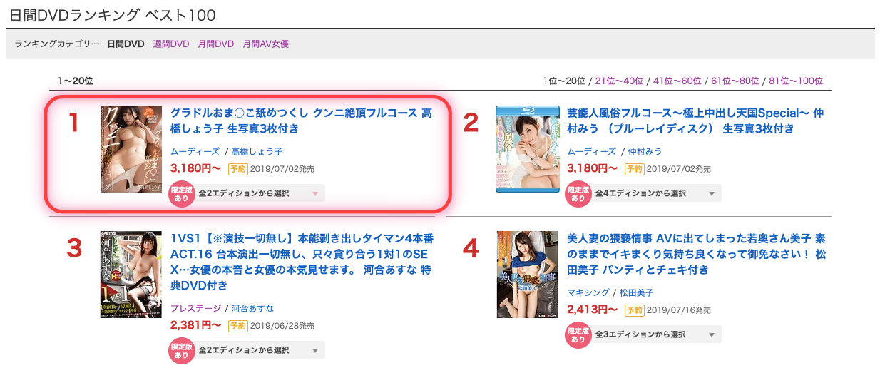 雖然上一篇提到的深田えいみ(深田詠美)追得很兇,不過在網站FANZA(就是DMM)的銷售排行榜仍然是高橋しょう子(高橋聖子)穩定領先。說真的,從2009年寫Blog到現在我從沒見過有女優可以紅那麼久,就看看高橋還能維持熱度多久吧~