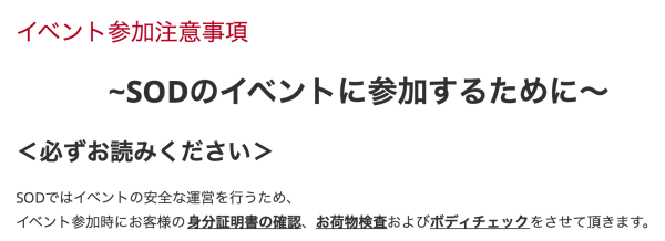 有多麻煩呢?在日本,想參加SOD舉辦的女優見面會有三大限制:第一,你必須準備好附有照片的身分證明文件、確認是本人後才能參加活動;第二,走進會場前必須給現場警衛人員檢查你帶的東西,有需要的話還得給對方搜身;第三,禁止影迷直接把禮物交給女優,店舖會在現場準備一個箱子收納,等活動結束後統一交給女優…