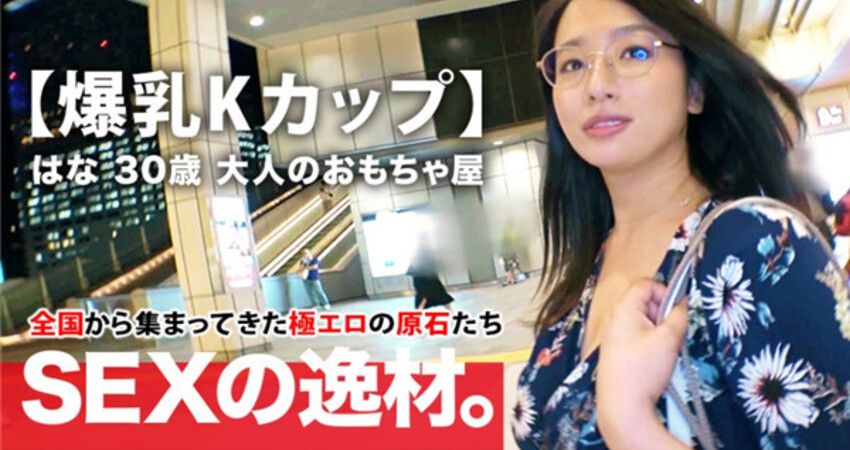駅の改札付近で待ち合わせをしていたのははなさんです。メガネが似合う知的な女性です。そして一目見た時から目がいくのがワンピースのVラインから覗く谷間と豊満なおっぱい。動くたびに服からこぼれ落ちそうでついつい見てしまいます。移動しながら話を聞いていくとなんとその豊満なおっぱいはKカップだそうです…!こんな魅力的なボディをしていたら引く手数多かと思いきや、性欲が強過ぎて欲求不満気味だそうです。ソッチ方面に興味があり過ぎて現在アダルトショップで働いているそうです。これはかなりポテンシャルの高い女性に違いありません!早速ホテルに移動してインタビューを進めていきます。セクシーなワンピースの下にはさらにセクシーな下着を着ていたはなさん。パンティーの上からクリを撫でてナカに指を挿れてみると、徐々に表情がトロンとしてきて気持ちよさそうにしています。玩具でナカをかき混ぜられてイってしまったはなさん。これから控えている本番に緊張+期待も大きいようです。シャワーを浴びてスッキリしたところで男優とのセックス開始です。先程とは比べものにならない太いち○ぽにうっとり顔でしゃぶりつく彼女、久し振りのセックスということもありタガが外れたかの様に無我夢中で堪能していました。