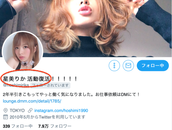 但就和字面上的意思一樣,星美りか(星美梨香)就只是「活動復活」,沒有拍AV的打算喔ー