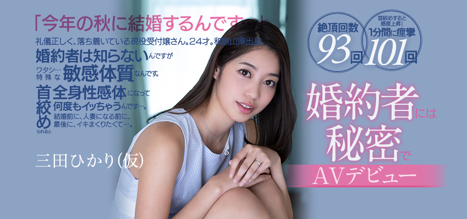 作品名:「今年の秋に結婚するんです…」礼儀正しく、落ち着いている現役受付嬢さん。24才。和歌山県出身。 婚約者には秘密でAVデビュー 婚約者は知らないんですがワタシ…特殊な敏感体質なんです。 首絞められると全身性感帯になって何度もイッちゃうんです…。結婚前に、人妻になる前に、最後に、イキまくりたくて…。