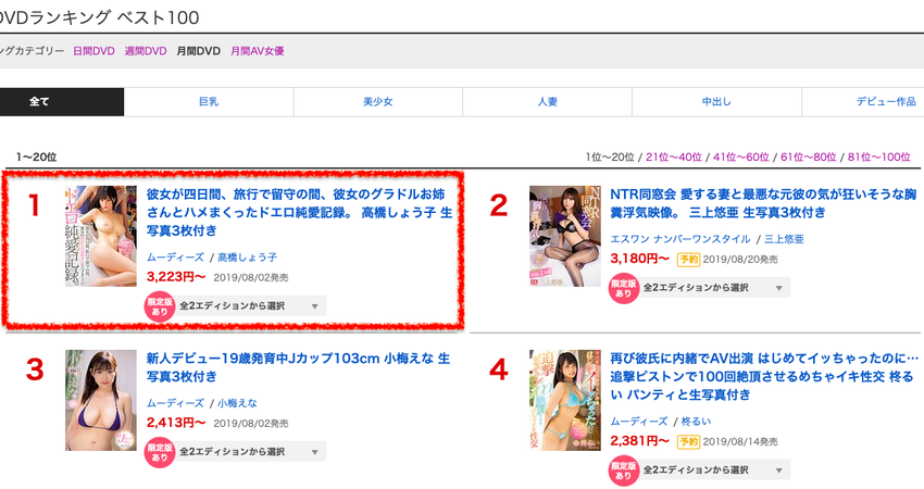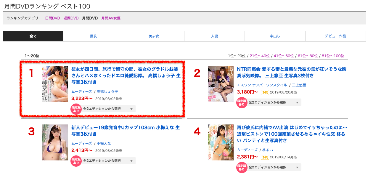 又一次,高橋しょう子(高橋聖子)的作品「彼女が四日間、旅行で留守の間、彼女のグラドルお姉さんとハメまくったドエロ純愛記録。」拿下了FANZA銷售排行榜的當月冠軍ー