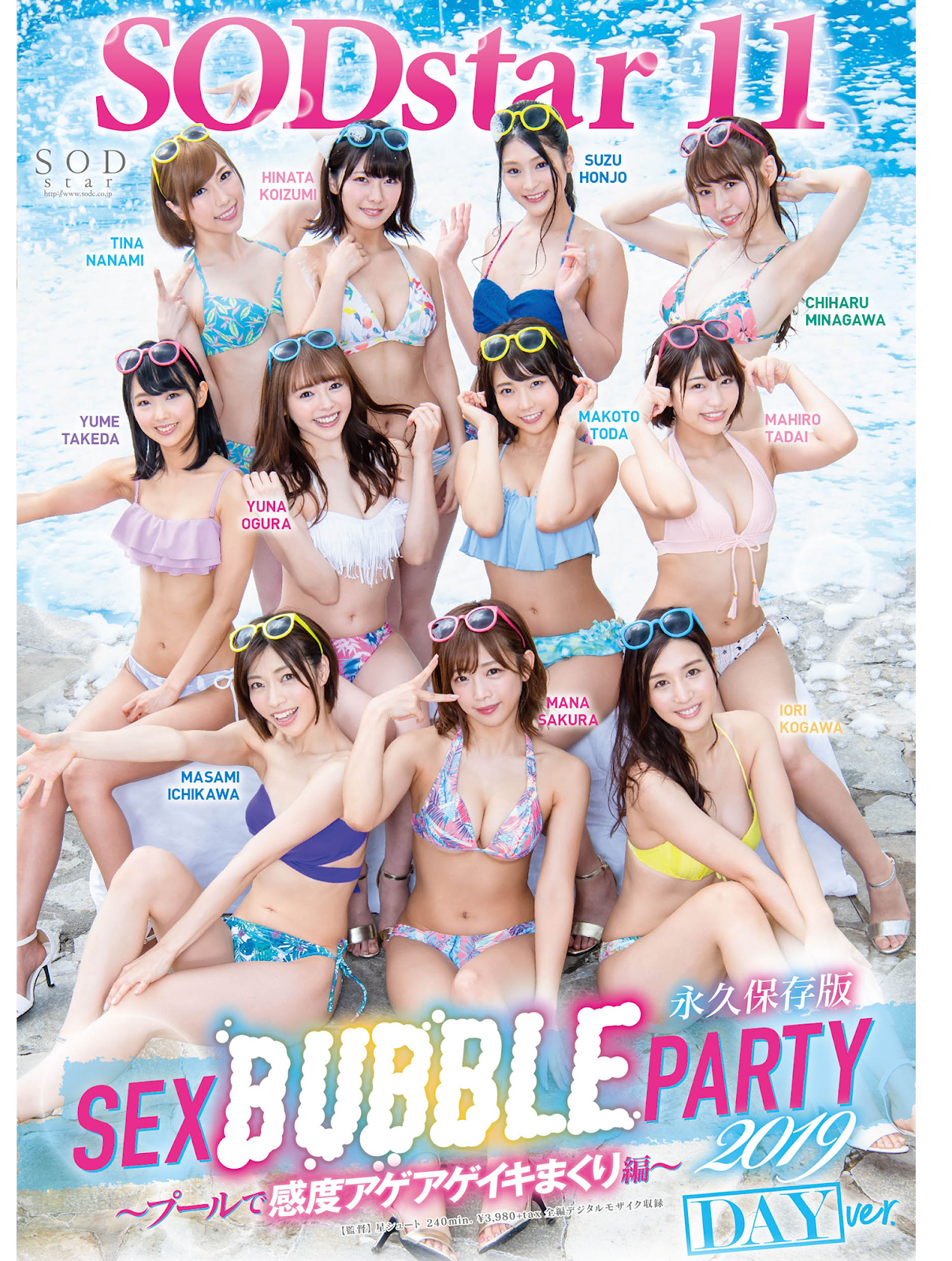 業界指標的偶像片商SOD STAR動員了旗下的11位專屬女優共演了這支名為「SODstar 11 SEX BUBBLE PARTY 2019 ~プールで感度アゲアゲイキまくり編~」,除了幾個比較菜的新進女優沒參與到外是全員出動,一個都沒有少~