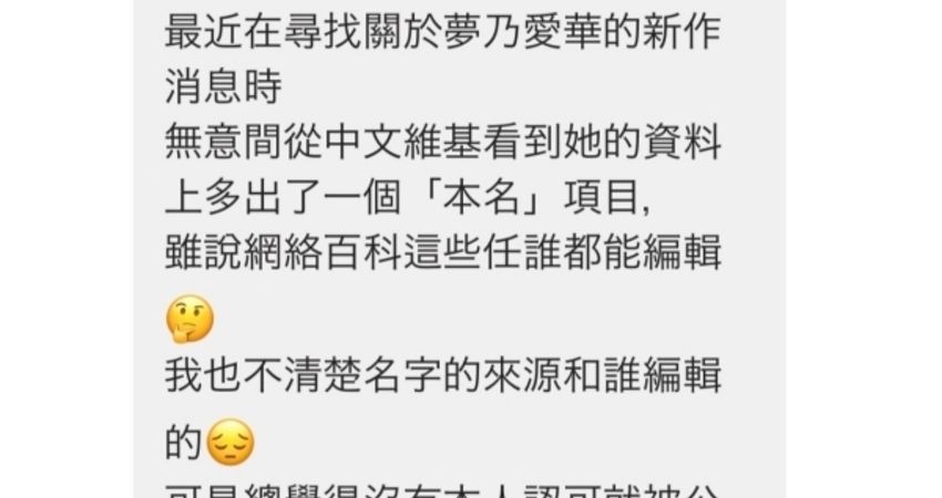 出了什麼事?原來他發現夢乃あいか(夢乃愛華)被人更新上了本名,但只有中文的部分才有,日文的部分就看不到…