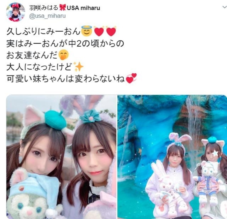 最值得一提的就是她與AV女優『羽咲美晴(羽咲みはる)』從中學二年級時就已經認識,兩人的交情超過10年!!