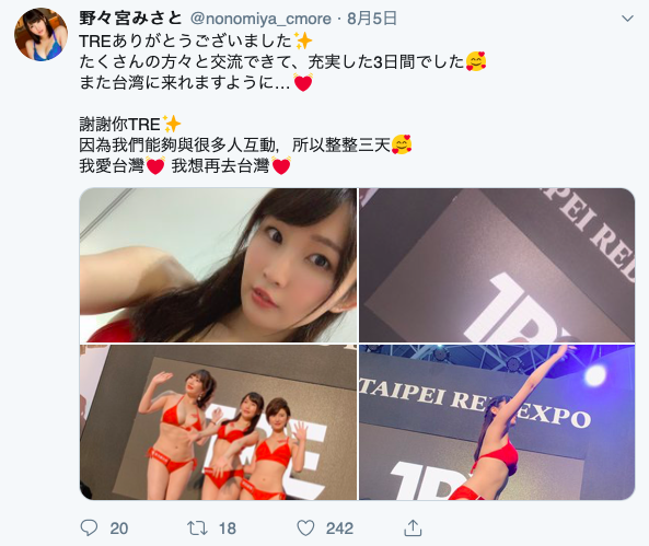 所以當社長牽著野々宮來說希望她能再造訪台灣的時候我們是一口氣答應,等到桐谷まつり(桐谷茉莉)來到台灣時我們就會和經紀人好好聊聊,希望很快能有再合作的機會!