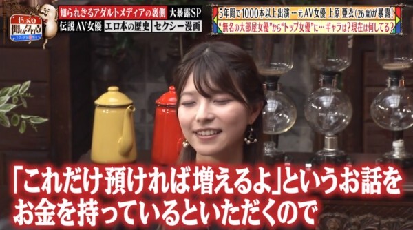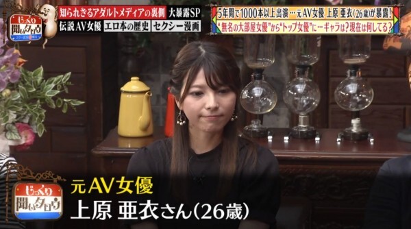 我知道有些朋友覺得這些節目不用認真,女優不過是去講一個設定好的故事,但女優的薪資倒是可信度挺高的,究竟~上原亜衣在全盛時期一個月能賺多少錢呢?
