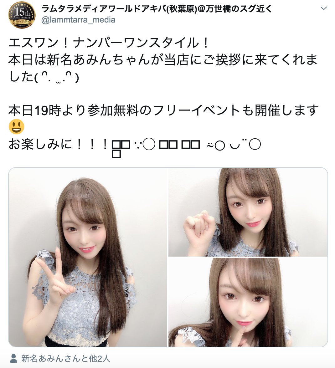 也因為像美圖秀秀這樣APP實在太厲害,所以有一堆修過頭的照片到處流竄:舉個例子,由影迷轉為女優的新人「新名あみん(新名愛明)」來勢洶洶、看起來很厲害對不對?沒錯,不久前舉辦的免費見面會是人山人海,但店舖PO上去的照片一整個就是怪:
