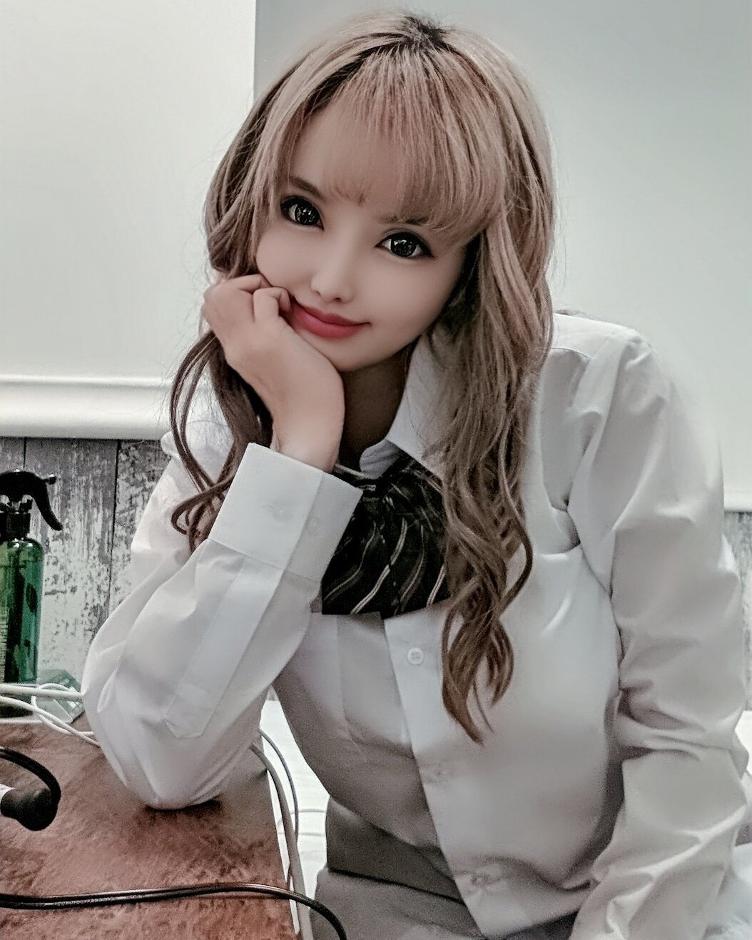 不知道是角度的問題還是手機APP的美肌功能歪掉,新名あみん(新名愛明)不只五官排列的角度全都亂掉而且那微微露出的門牙更是把她的氣質降低了好幾個層次;也難怪文章一出來馬上就有人在下面留言:「你整型了喔?」