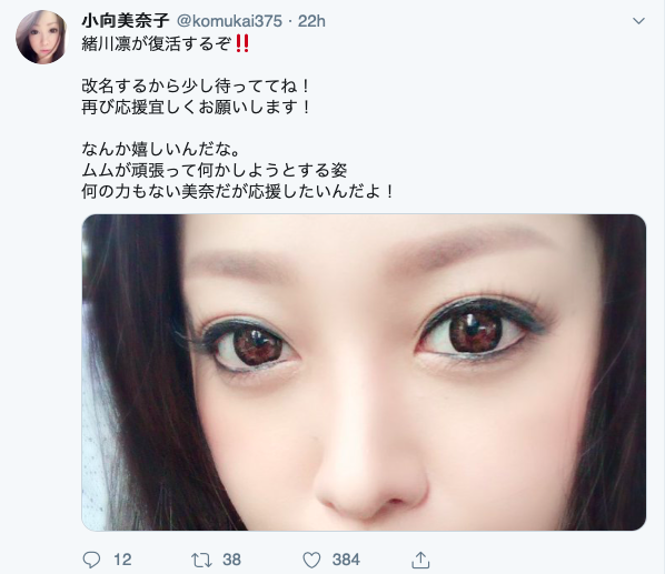 消息的來源是好一陣子沒發片的藝能人女優「小向美奈子」,雖然我比較想知道她還有沒有拍片的打算,不過這種事她是不會亂說的,沒錯,藝態人片商Muteki出身、已經在2015年引退的「緒川凛」要復活了…