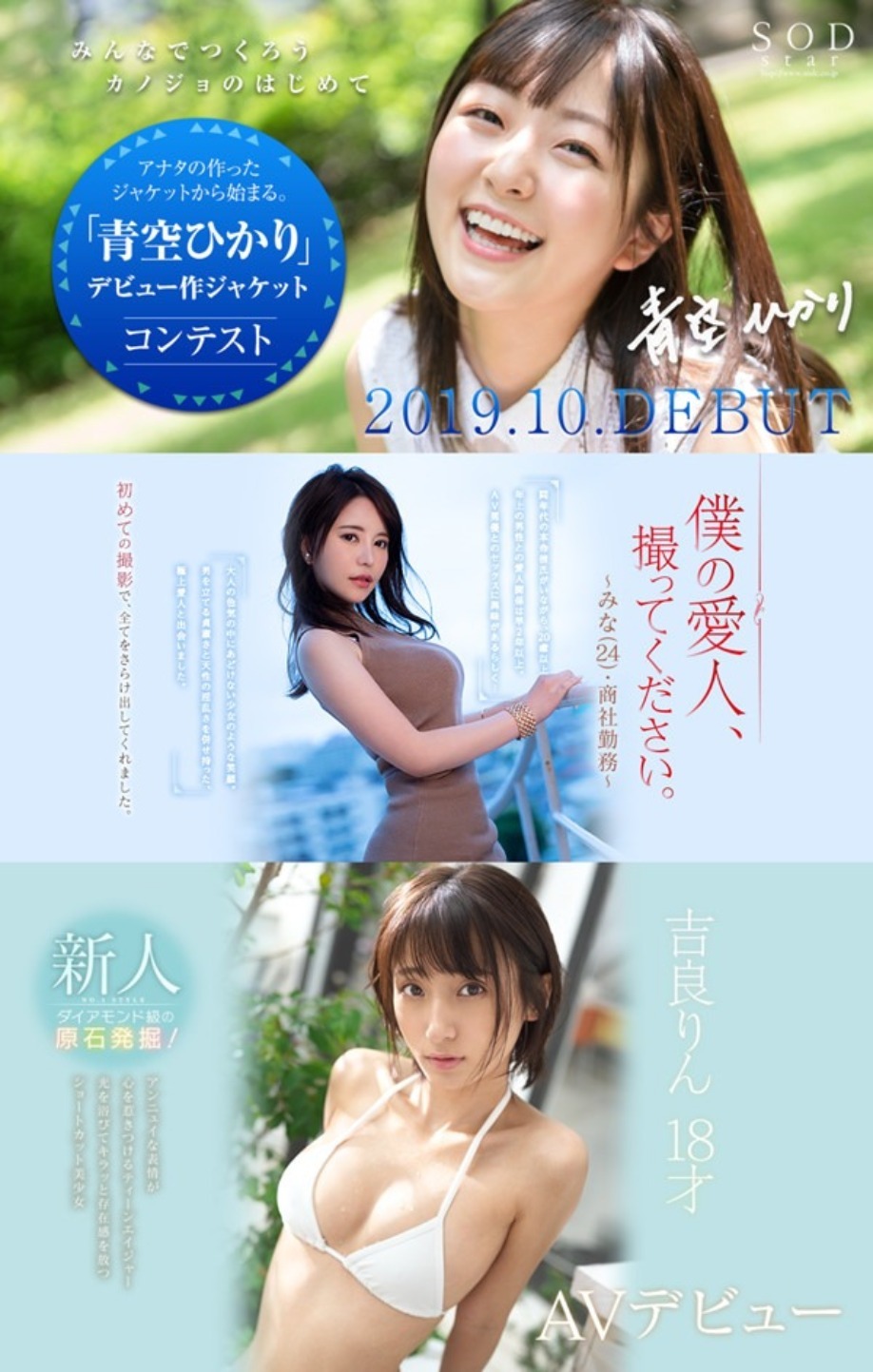 SOD家的強力打主,說自己「很享受性愛」的可愛女孩登場,她最強的戰力就是有著一張有活力的甜美笑容,加上身材條件實在太優秀,SOD還為了她推出超強的行銷活動,讓Aver在官網下載寫真照並且設計自己喜歡的封面,SOD則在這些投稿的作品開放投票,得到第一名的優勝者,SOD就會用這個作品當成影片封面,這個實在是太厲害了呀。