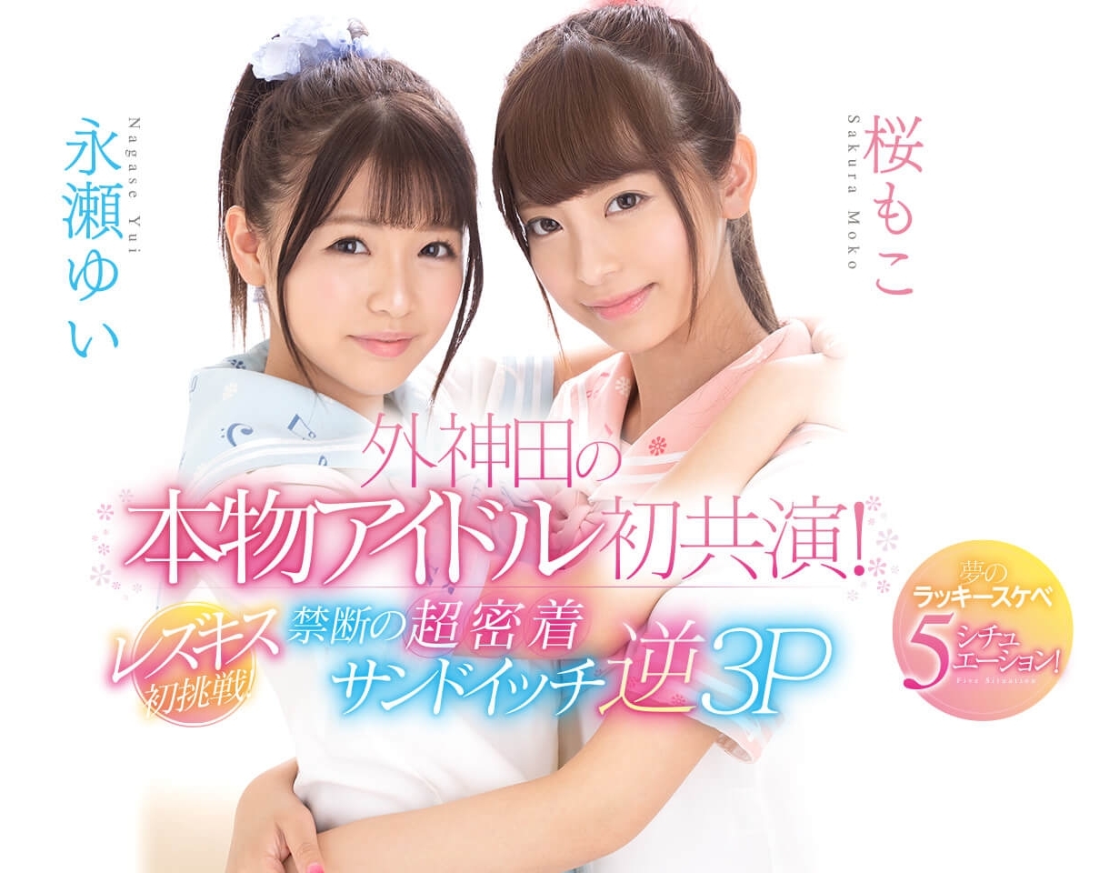 為什麼?因為這支「外神田の本物アイドル初共演!レズキス初挑戦!禁断の超密着サンドイッチ逆3P 夢のラッキースケベ5シチュエーション!」不只是兩位女優的共演,而且桜もこ(櫻萌子)和永瀬ゆい(永瀨唯)還有著其他女優沒有的關係: