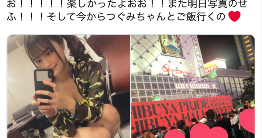 這就是日本,這種藉酒裝瘋或是AV看多了以為主動出擊人家就會高潮的王八蛋很多,萬聖節現在成了他們自以為是的狂歡藉口。不過這事和AV界有什麼關係呢?原來有人從該女子的打扮和髮型,懷疑她是最近走紅的企劃女優「奏音かのん(奏音花音)」:
