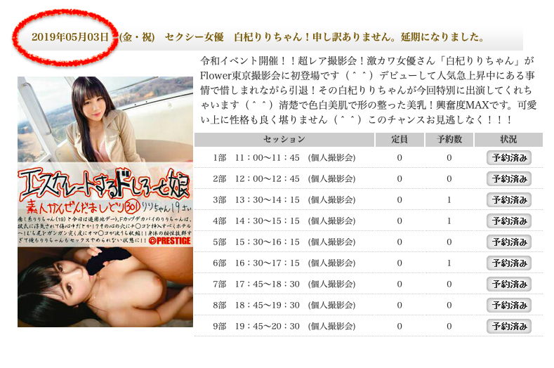 我個人的判斷是這樣的,首先,白杞りり(白杞莉莉)可能一開始就沒有在AV界久待的打算,在Prestige以及MGStage的作品可能是一口氣拍完的;再來,其實她並不是藏龍藏了一年多才回歸的,今年4月底的時候她還舉辦了攝影會,雖然2次的活動都取消延期,但可以知道她人並非找不到的,或許就是因為如此才給了無碼片商可趁之機⋯
