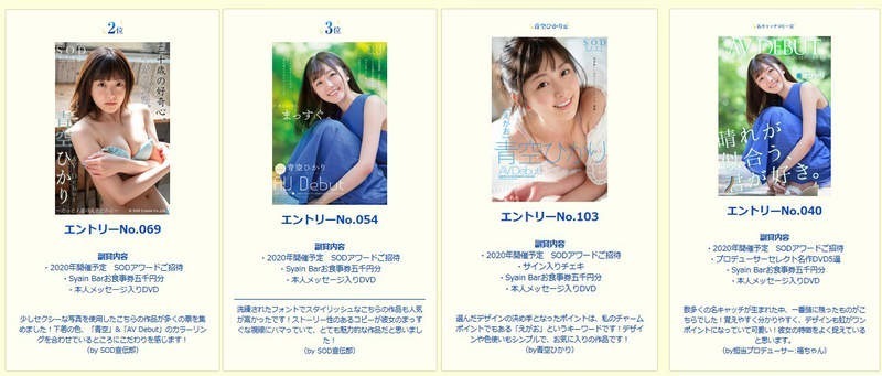 20歲的『青空光(青空ひかる)』是SOD年底主戰新人,走偶像路線,炯炯有神的大眼睛,因為她條件實在太優秀,於是SOD幫她辦了特別活動,只要在SOD官網中下載青空光的寫真照片,然後透過軟體設計成自己喜歡的封面參加比賽,你設計的青空光封面就可以在SOD的官網中讓大家投票,誰設計的最棒並奪下冠軍...SOD就會拿這張作品當封面!活動一推出收到熱烈的投搞,甄選時SOD總共收到了113張的設計作品!最後選出了5個得獎作品,其中第一名的那個作品就直接當成封面,另外設計者還獲得了SOD準備的獎勵呢。