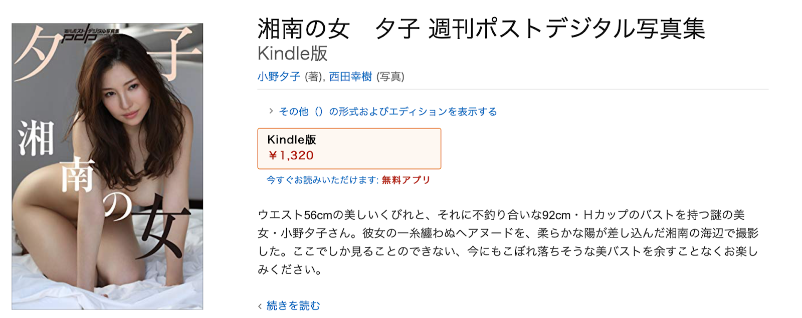 在日本カメラ2019年9月号的寫真後,小野夕子再度與週刊ポスト合作推出數位寫真「湘南の女 夕子」:大家可以看看雜誌是怎麼介紹小野夕子的?答案是「ウエスト56cmの美しいくびれと、それに不釣り合いな92cm・Hカップのバストを持つ謎の美女」(擁有56公分極纖細腲身、胸圍92公分H罩杯的謎之美女),沒錯,明明不用是老司機就能認出她的身分,但人家就硬要說她是謎の美女〜