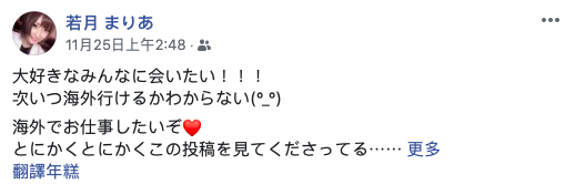 這就是為什麼若月まりあ(若月瑪麗亞)會在臉書說自己想去海外工作的原因,因為片商來的Offer不多,她只能把希望放在海外⋯