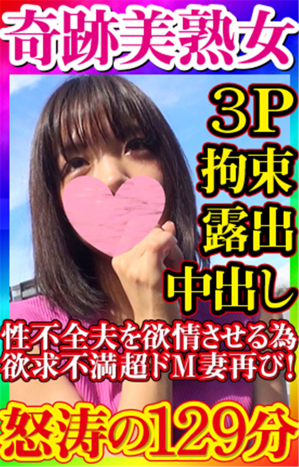 タイトル: 【無・素人個撮】気合の長尺129分!リクエストにお応えして奇跡の人妻美熟女が再登場!露出から拘束、3Pとイジメまくりの新境地!これだけすれば超ドM妻は満足してくれるか!?そして勃起不全の旦那は興奮して