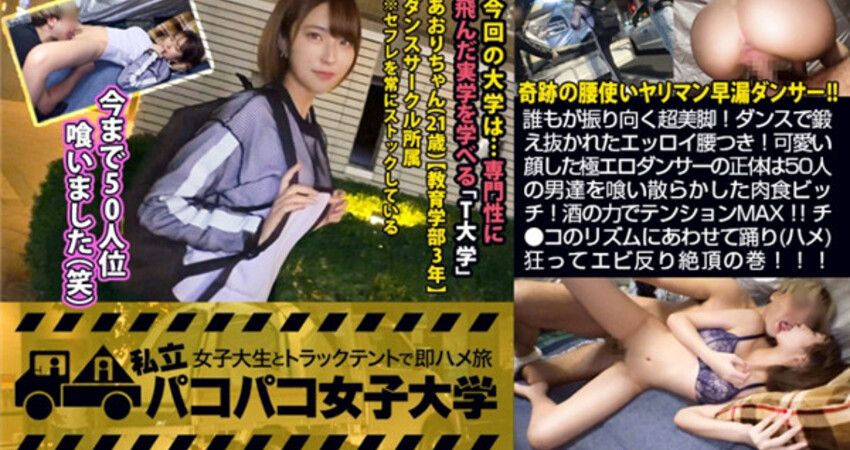 300MIUM-531 【ヤリマン早漏ダンサー】誰もが振り向く超美脚!ダンスで鍛え抜かれたエッロイ腰つき!可愛い顔した極エロダンサーの正体は、50人の男を喰い散らかした肉食ビッチ!酒の力でテンションMAX!!チ●コのリズムにあわせて踊り(ハメ)狂ってエビ反り絶頂の巻。:パコパコ女子大学 女子大生とトラックテントでバイト即ハメ旅 Report.109