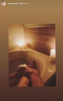 看圖說故事的話就是桜空もも(櫻空桃)在洗鴛鴦浴,至於是一起放鬆一下還是讓那隻大腳丫的主人鬆一下後洗香香我就不知道了。而桜空もも(櫻空桃)似乎也注意到自己犯了錯,這張放在IG限時動態的照片很快就刪除了: