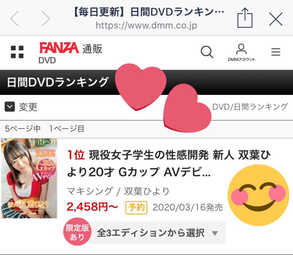 也不用急著否定她,因為她還是拿到了網路FANZA的單日銷售冠軍,說明了日本影迷對新人的痴迷程度真是超乎想像。俗話說的好,好的開始是成功的一半,双葉ひより(雙葉日和)如果能延續發片的氣勢,Maxing就有救了: