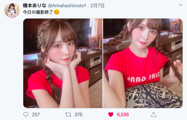 耳語當然是少不了的,畢竟去那兒的女優不只一個,不用女優自己講,片商的工作人員早就傳來傳去了;不過最直接的明示(對,根本不算暗示)還是在橋本ありな(橋本有菜)的twitter上: