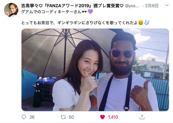 她在twitter上說了,關島(グアム)很熱,然後往前看可以發現她在2月7日的時候有攝影工作,所以我們可以合理地懷疑她是去了關島拍片然後工作結束去放鬆一下。然後以日本廠商的習慣,除非是拍寫真,要不然不會是一個女優跑那麼遠去拍片,這時候我們就要找找了,誰那個時間也在關島?