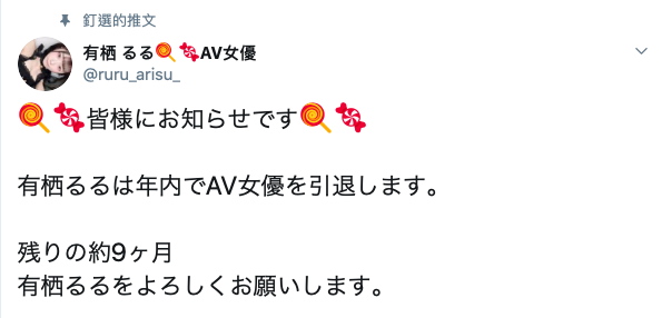 那就是有「kawaii*史上最強美少女」之稱的有栖るる(有栖露露),她在twitter昭告天下2020將是她在暗黑界服務的最後一年,接下來還剩9個月的時間請大家多多指教……