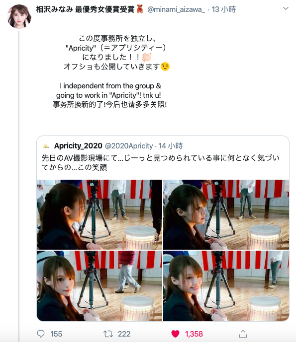新的事務所叫「Apricity」,應該會有人想知道,相沢みなみ(相澤南)為什麼要換新事務所?此後又有什麼不同吧?