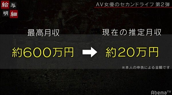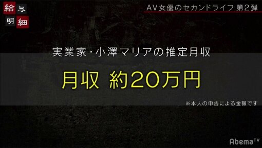 答案是20萬日幣(折合台幣約5.9萬),雖然不能和過去單月最高收入600萬日幣(約174.3萬台幣)相比,不過小澤マリア(小澤瑪麗亞)滿意地說這樣的收入在菲律賓很好過的,她很滿意現在的生活〜