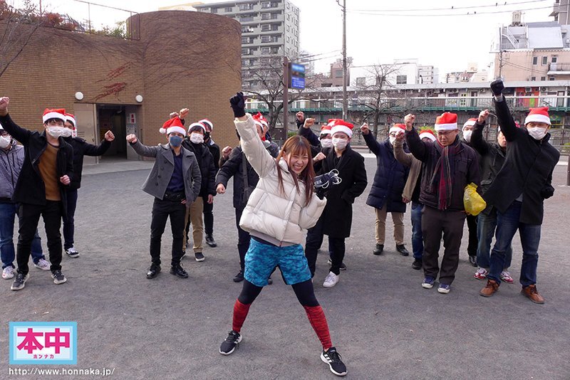 遊戲規則是什麼呢?在去年的聖誕節,片商是召集了一般人、大學生、資深汁男優、歐吉桑以及第7世代AV男優一起到横浜港玩遊戲,美谷朱里會到各個景點自拍美照上傳twitter,這些都是單身、想在聖誕節搞大人家肚子的參賽者在看到照片後就要到同一個點用同一個姿勢拍照(要露臉以防作弊),照片最多的參賽組就拿到勝利,可以肆無忌憚地中出美谷朱里⋯