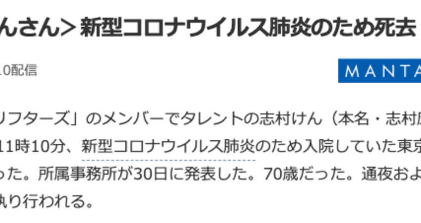 結果就這樣,短短幾天,從宣布確診到病逝,志村けん(志村健)根本來不及和大家說再見~