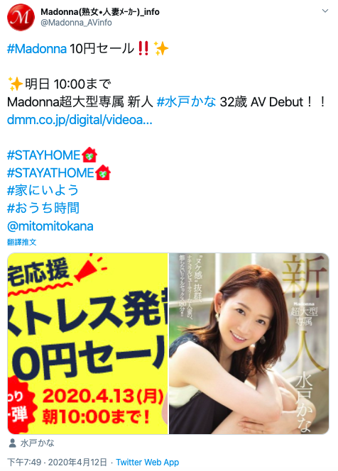 雖然業界是有特別把女優資歷歸零再出發的特別出道作(波多野結衣和大槻ひびき都有),但我實在不覺得水戸所屬的片商會這麼做,順著那位朋友的指引到了網頁,我才知道是怎麼回事: