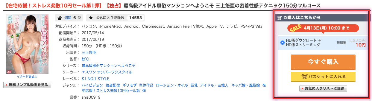這是因應肺炎流行而做的緊急企劃,大家應該還記得之前SOD推出的200片免費看到飽計畫吧?雖然因為網站負擔不了那麼大的流量加上流出用戶個資而宣告中止但也給了FANZA(就是DMM)啟發,於是這個業界最大的賣片網站就推出了這個「10円セール(10圓日幣特賣會)」ー